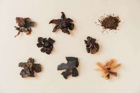 豊作和牛の赤身肉・レバー・ラング・ハツなどをじっくり乾燥。オーブンで焼いたあと、ミキサーで荒めにブレンド。原料の配合歩合は製造ごとに異なります。全て手作業、完全無添加・保存料なし・生産者の見えるペットトリートです。